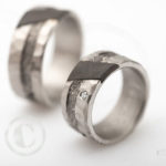 Comme vous le constatez sur ces photos, le palladium peut, parfois, être rendu plus sombre (voir les bagues rayées), ou plus clair (voir bagues plus lisses, satinées) ou très clair quand il est poli (bagues avec le carbone).