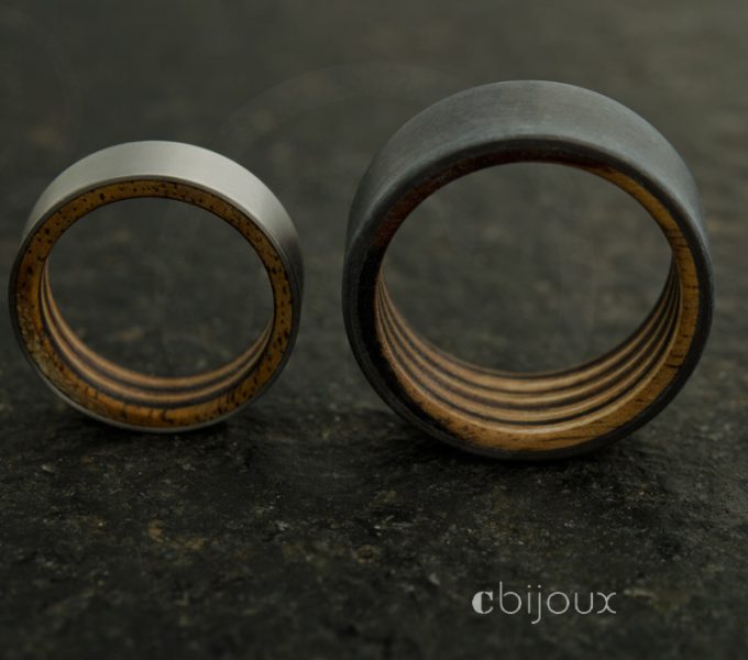 alliances mariage tantale, titane et bois