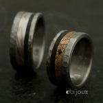 Ce ne sont pas des pièces à dupliquer mais plutôt à prendre comme une source d’inspiration pour créer une nouvelle paire d’alliances pour vous selon les différents critères pour lesquels vous avez particulièrement de l’affinité : tels que le profil (la forme de la bague , bombée, plate, léger arrondi …) la / les matières, les finitions, les structures, les pierres, les gravures …