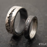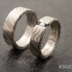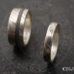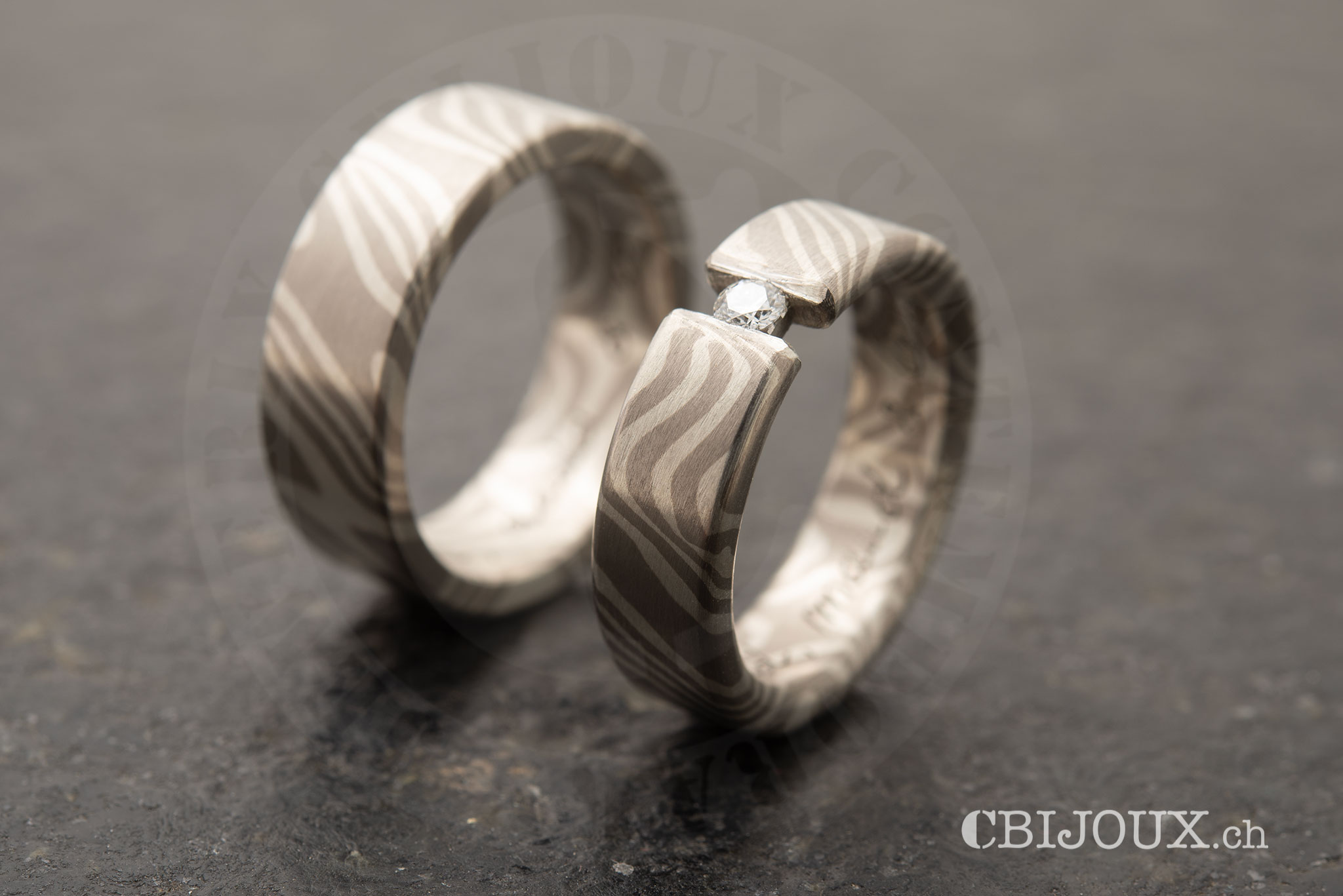 Ces créations ne sont pas industrielles ; elles portent l’empreinte d’un artisanat vivant. Par exemple, une alliance en tantale martelé peut être ornée d’une bande de mokume-gane alliant palladium et argent, pour un contraste moderne et intemporel. Ou encore, des bagues de fiançailles où les veines du mokume-gane dialoguent avec des diamants délicats. Chaque pièce raconte une histoire, comme celle d’un couple cherchant une alliance plus moderne que la tradition, ou d’un renouvellement de vœux gravé d’une île symbolique.