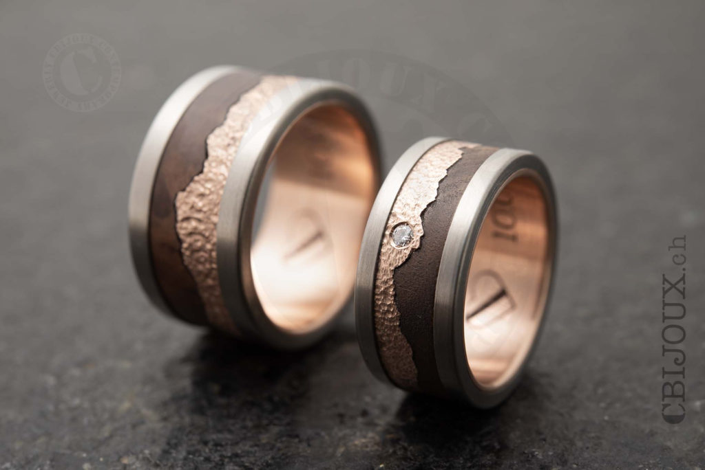 En tant qu’orfèvres spécialisés dans les alliances de mariage personnalisées, nous croisons quotidiennement ces histoires vivantes. Une alliance n’est pas seulement le sceau d’un engagement amoureux ; elle devient, avec le temps, un vecteur d’héritage. Par exemple, nous avons réalisé pour Line et Florian des bagues ciselées avec un motif inspiré des montagnes valaisannes, évoquant les Dents du Midi et les Dents Blanches – lieux chers à leur cœur. Des années plus tard, cette alliance pourrait orner le doigt d’une petite-fille, lui racontant non seulement l’amour de ses grands-parents, mais aussi leur passion pour la nature, leur attachement à la terre natale. C’est là la magie des bijoux : ils encapsulent nos valeurs – fidélité, résilience, authenticité – et les rendent palpables pour les descendants.