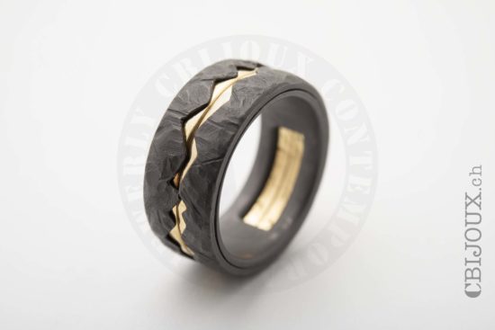 À propos de Cédric Chevalley: Né à Montreux en 1972, Cédric Chevalley est un bijoutier et artiste suisse. Après une formation de mécanicien de précision et une expérience en travail du verre en République tchèque (1993), il devient bijoutier-joaillier en 2001, remportant le 1er Prix technique du Prix Golay. Il fonde cbijoux la même année et crée en 2004 la bague « Mood », un concept innovant personnalisable. Pionnier du tantale en bijouterie depuis 2005, il associe métaux et bois dans un style contemporain épuré. Basé à Monthey depuis 2013, ses créations s’exportent internationalement.