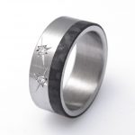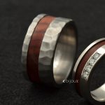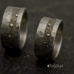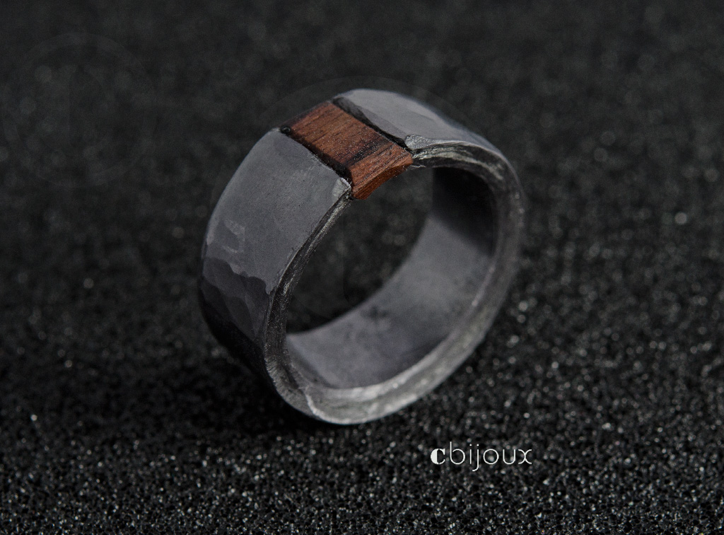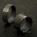 - bague brute en tantale « béton » martelé et pièces centrale rayée en chromoco