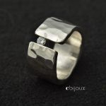 - bague martelée brut avec ligne cire perdue rayé et mini-bulles