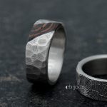 - alliances irrégulières, martelées en titane et lignes à la cire perdue en argent rayé profond et bulles